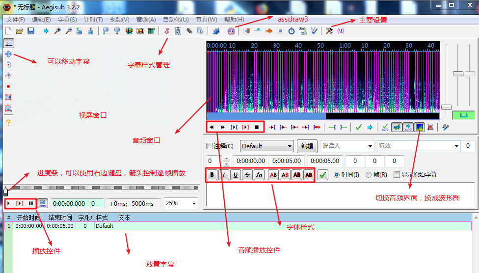 我建議使用Aegisub,這軟件的ASS很強(qiáng)大,特效也是,支持lua,軟件是開源的,項(xiàng)目估計(jì)已經(jīng)停止開發(fā)了,好久都沒有更新了,下載安裝好后的軟件界面