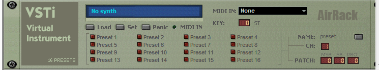 AirRack中文版是一款相當(dāng)不錯的音頻控制工具;它擁有完整的現(xiàn)場氣氛、現(xiàn)場音樂的各種效果解決方案,而且還將許多的功能進(jìn)行集中,包括了調(diào)音臺、VSTI虛擬樂器等;軟件可以讓用戶通過一臺電腦、一個簡單實(shí)用的MIDI鍵盤,就可以使用音樂來對您的現(xiàn)場進(jìn)行控制,感興趣或者需要的朋友趕快來本站將AirRack(音頻控制軟件)下載使用吧!