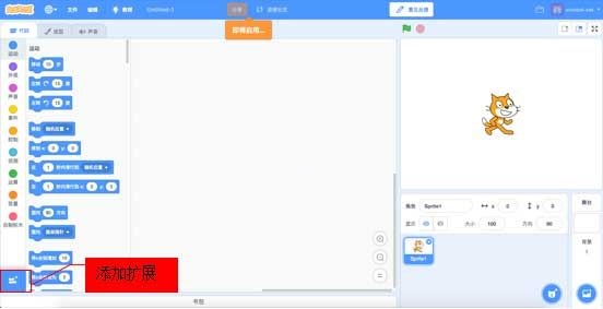 (2)2.0中更多積木分類下的添加擴展,作為一個大類單獨分離出來。而版本2.0中的畫筆、音樂演奏、視頻偵測等相關分類及指令都作為了擴展模塊,用戶需要點擊添加擴展才可以使用;