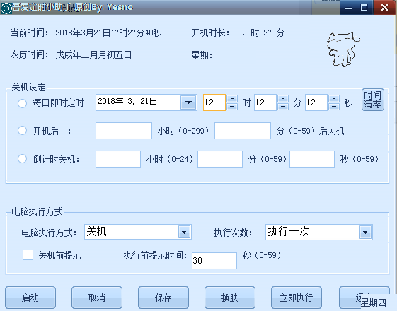 可以實(shí)現(xiàn)無人值守狀態(tài)下的快速關(guān)機(jī)。定時關(guān)機(jī)酷,小巧而干凈的定時關(guān)機(jī),定時注銷的關(guān)機(jī)工具