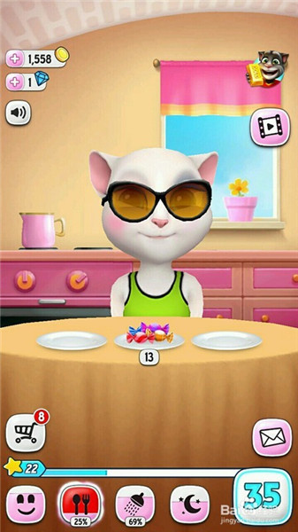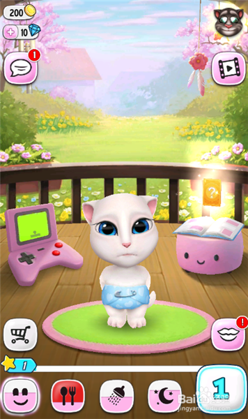五、點(diǎn)擊笑臉模式:1、觸摸安吉拉可以跟他玩。2、點(diǎn)游戲機(jī)就可以玩游戲。