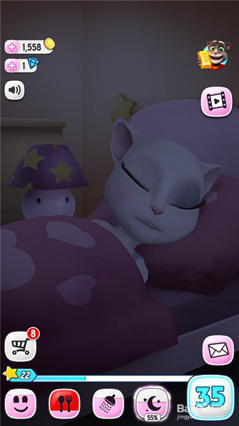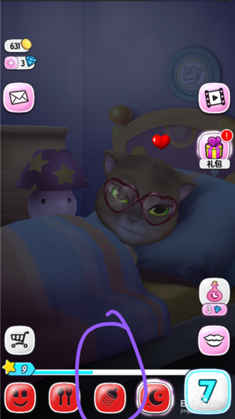 四、安吉拉困了就點(diǎn)擊有月亮的按鈕在按臺(tái)燈把燈關(guān)掉,安吉拉就進(jìn)入睡眠模式了。