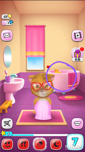 2、然后進(jìn)入衛(wèi)生間了,點(diǎn)擊浴缸,讓貓咪進(jìn)去。
