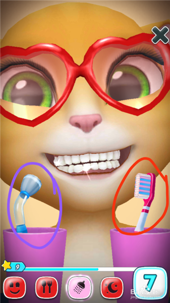 三、擊有噴頭的按鈕可以給安吉拉做清潔:1、點(diǎn)擊澡盆洗澡:先用香皂涂抹安吉拉,在用噴頭淋水,有相應(yīng)獎(jiǎng)勵(lì)的金幣。2、點(diǎn)擊牙刷可以給安吉拉刷牙。3、點(diǎn)擊鏡子可以給安吉拉化妝。