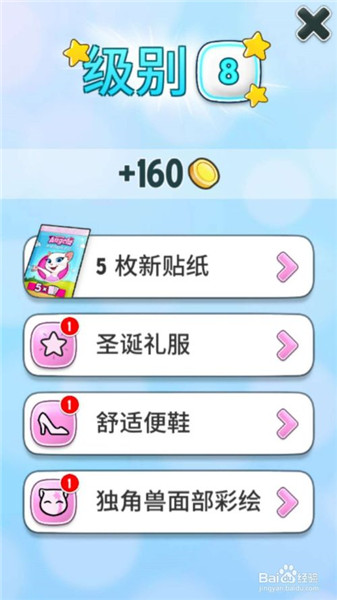 七、點(diǎn)擊視屏按鈕就可以看安吉拉相關(guān)視頻短片、每升一次極,系統(tǒng)會(huì)送相應(yīng)的安吉拉貼紙,從復(fù)貼紙可以出售或者賣給別人換的金幣。