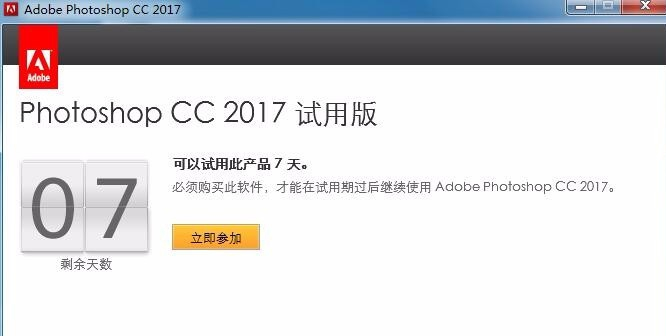 這個時候我們會發(fā)現(xiàn)打開PS cc2017后只是試用版,這個時候就需要我們對軟件進(jìn)行破解了。