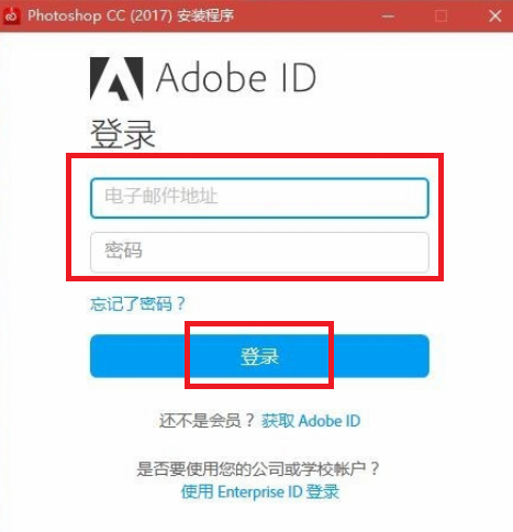 安裝從本站下載完成后打開Adobe CC 2017\AdobePhotoshop18-mul_x64下的Set-up,輸入Adobe ID和密碼,注冊一個即可。然后點擊繼續(xù)等待安裝完成。