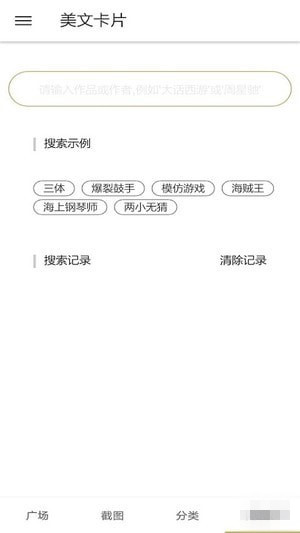 【搜索功能】美文卡片app支持熱門語句的搜索,您可以直接輸入關(guān)鍵詞內(nèi)容,美文卡片APP就會快速的為您展示對應(yīng)的圖文。