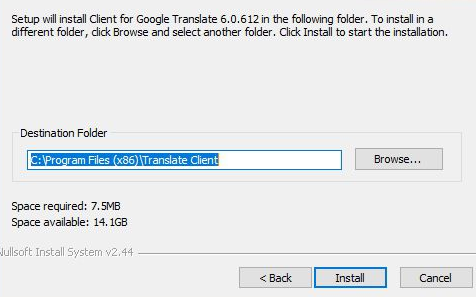 安裝方法1、點(diǎn)擊啟動(dòng)translateclient_6.0.612.0.2933704218.exe軟件,這里是軟件的安裝主界面