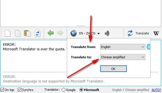 4、如圖所示,可以設(shè)置翻譯之前是English,翻譯之后選擇Chinese