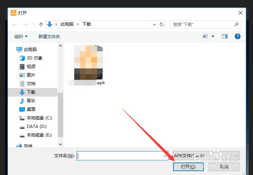 5、選擇好apk文件后選擇“打開(kāi)”。