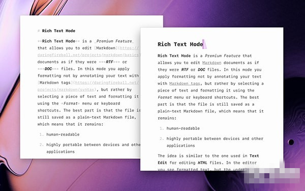 Paper Mac版采用了貼合Mac系統(tǒng)的美觀簡(jiǎn)潔設(shè)計(jì),支持使用手勢(shì)和快捷鍵來(lái)快速完成編輯能力。與macOS的豐富的模板整合,支持MarkDown格式。 Paper Mac版支持將編輯的文本導(dǎo)出為PDF,HTML,RTF等等格式。支持Polyglot剪貼板,擁有高級(jí)定制的編輯功能。