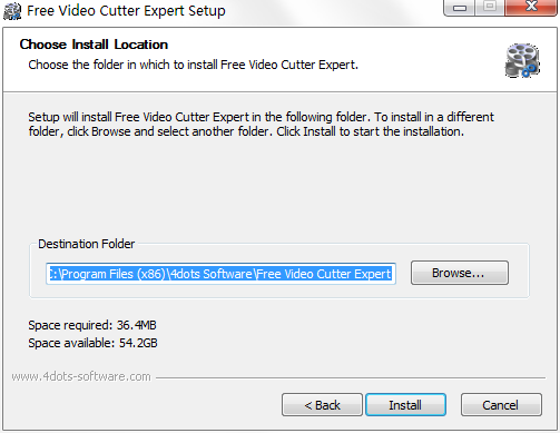 3、選擇video cutter expert軟件安裝路徑,點擊install按鈕,等待軟件安裝完成即可