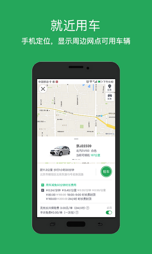 1、地圖找車通過地圖進行簡單的找車服務(wù)、找到你身邊的空閑車輛!