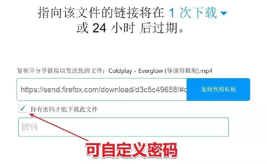 3、上傳完畢后會(huì)顯示具體的下載鏈接,文件的鏈接將在首次下載或24小時(shí)候過期。