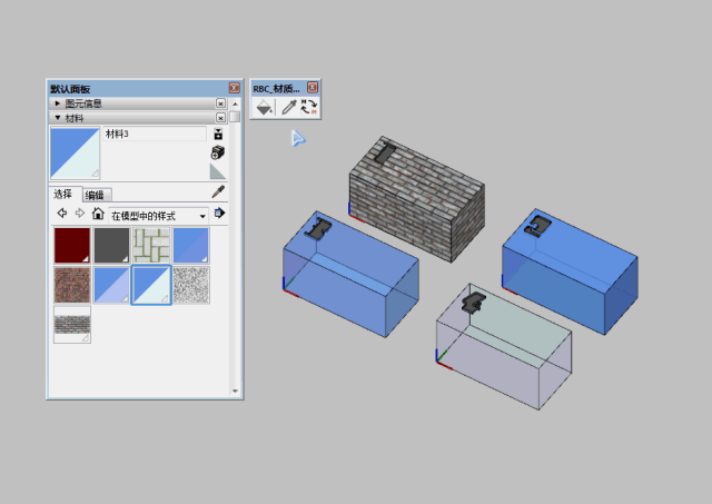 材質(zhì)替換:可以將整個(gè)SketchUp場景中的材質(zhì)a替換為材質(zhì)b。