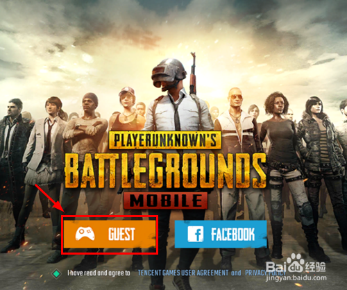 PUBG MOBILE打開后,熟悉的界面出現(xiàn)了,先用游客身份登錄,如圖所示