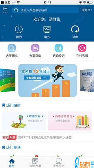 “珠海辦事”是由珠海市人民政府傾力打造的移動便民服務(wù)應(yīng)用。為市民及企業(yè)提供在線申辦、預(yù)約、辦事指南、進(jìn)度查詢、服務(wù)評議、咨詢投訴等服務(wù),并以方便企業(yè)和辦事人的需求提供事項(xiàng)分類導(dǎo)航功能的智能服務(wù)窗口。用戶可通過客戶端進(jìn)行政務(wù)信息的獲取、便民服務(wù)和互動交流。