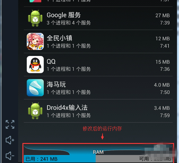 如何用海馬玩模擬器(Droid4X)修改運行內(nèi)存 ?1、首先,來確認模擬器內(nèi)當(dāng)前的運行內(nèi)存。