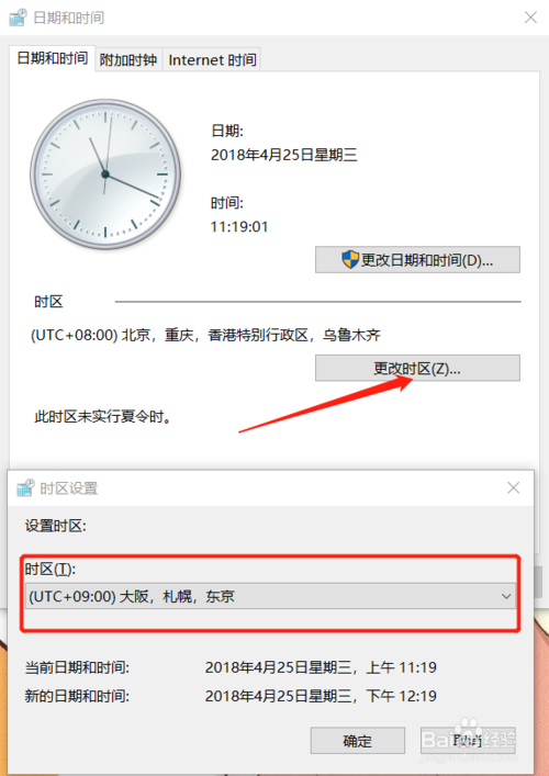 這里也有另一種修改系統(tǒng)時(shí)區(qū)的方法,打開(kāi)控制面板,找到日期與時(shí)間設(shè)置,點(diǎn)擊更改時(shí)區(qū),就可以直接選擇東九區(qū),點(diǎn)擊確定即可。