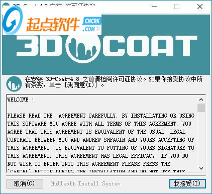 1、首先您需要下載3D-Coat中文破解版軟件,下載以后點(diǎn)擊安裝就可以了,點(diǎn)擊確定2、軟件的協(xié)議內(nèi)容,點(diǎn)擊接受就可以了