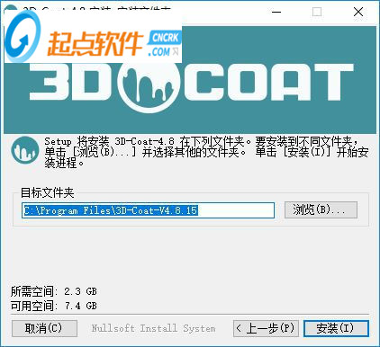 3、提示軟件的安裝地址,你可以選擇將其安裝到C:\Program Files\3D-Coat-V4.8.20