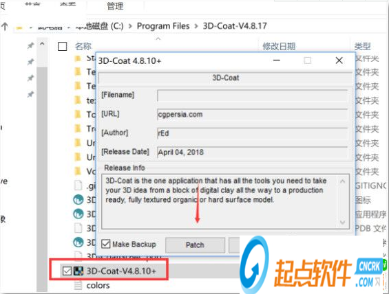 1.裝完成后,先不要運(yùn)行程序,復(fù)制”Patch.exe”到軟件安裝目錄下運(yùn)行,點(diǎn)擊Patch按鈕打補(bǔ)丁即可默認(rèn)路徑C:\Program Files\3D-Coat-V4.8.20