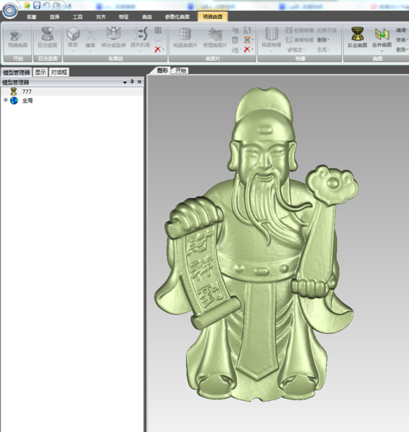 然后直接將模型導(dǎo)出,再導(dǎo)入一個(gè)geomagic中,簡單的幾步就可以生成NURBS曲面