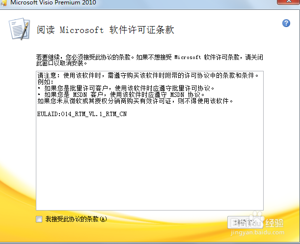 安裝雙擊執(zhí)行Microsoft visio安裝軟件,進(jìn)入到軟件許可條款頁(yè)面,如圖