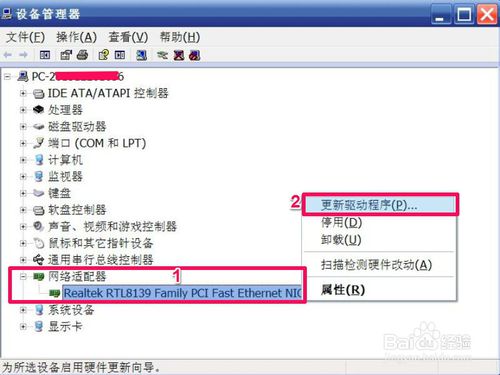 5、右鍵點擊網(wǎng)卡設(shè)備→更新驅(qū)動程序→指向光驅(qū)中的驅(qū)動程序光盤→按照提示完成更新即可。
