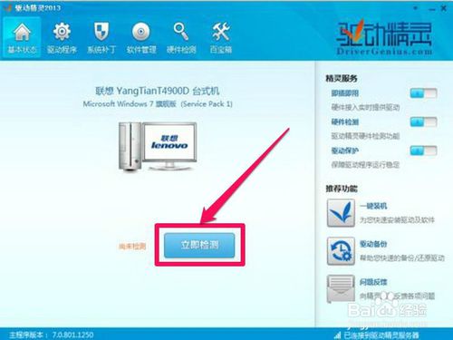 1,下載并安裝“win10萬能網(wǎng)卡驅(qū)動包”在電腦上,然后啟動,進(jìn)入主界面,點擊“立即檢測”按鈕。