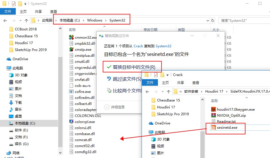 2、安裝完成后將“sesinted.exe ”復(fù)制到c:\windows\system32替換原文件