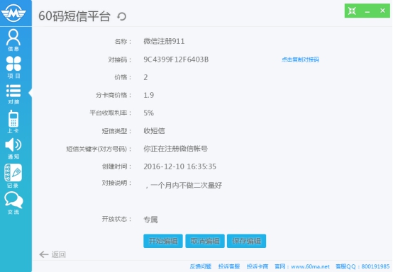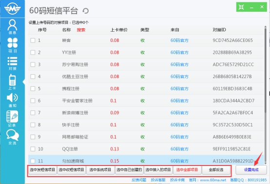 最后點擊立即開始上傳號碼。至此普通驗證碼業(yè)務——對接60碼官方的完成了。