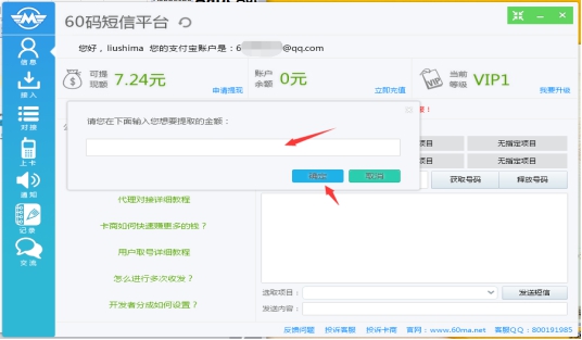 60碼短信平臺登錄成功,我們就可以開始使用軟件在線接收任務賺錢了。