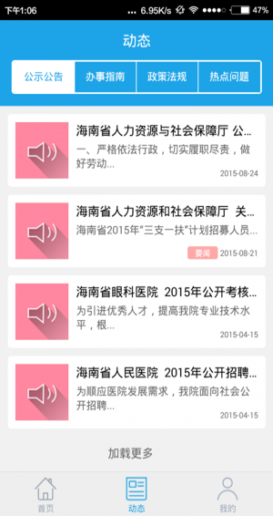 海南人社app是海南省人力資源和社會保障廳指定的一款掌上便民應(yīng)用,基于“移動互聯(lián)+便民生活”設(shè)計理念,集成社保查詢、社保卡業(yè)務(wù)服務(wù)、醫(yī)保服務(wù)、招聘就業(yè)、生存認(rèn)證等便民服務(wù),旨在打造“智慧海南人社”掌上便民服務(wù)平臺。