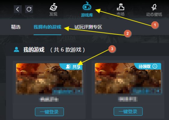 7、對(duì)方領(lǐng)取后,安裝登錄游戲助手,即可在“游戲庫 - 我擁有的游戲”中看到領(lǐng)取的游戲,可以一鍵登錄玩游戲
