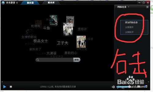 一、吉吉影音怎么添加網(wǎng)絡(luò)任務(wù)?1、安裝后打開播放器,鼠標(biāo)右擊,添加網(wǎng)絡(luò)任務(wù)。