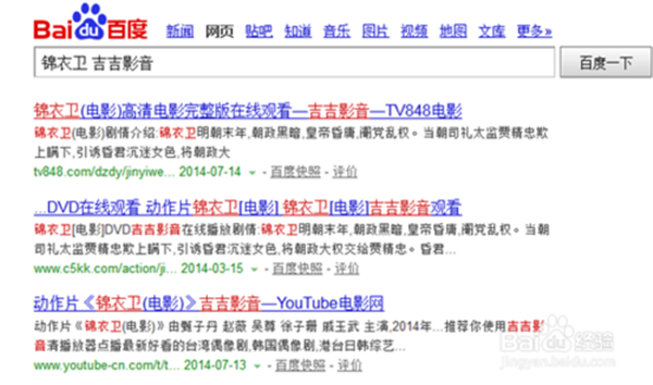 點擊下載安裝好之后,打開百度搜索電影如“錦衣衛(wèi) 吉吉影音”