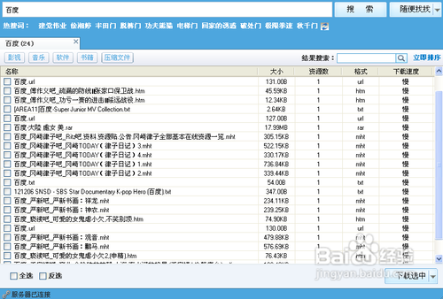 對(duì)于里面搜索后的功能應(yīng)用,可以點(diǎn)擊如圖所示地區(qū)對(duì)資源的大小,資源數(shù),格式,下載速度進(jìn)行帥選,根究個(gè)人需要而定。