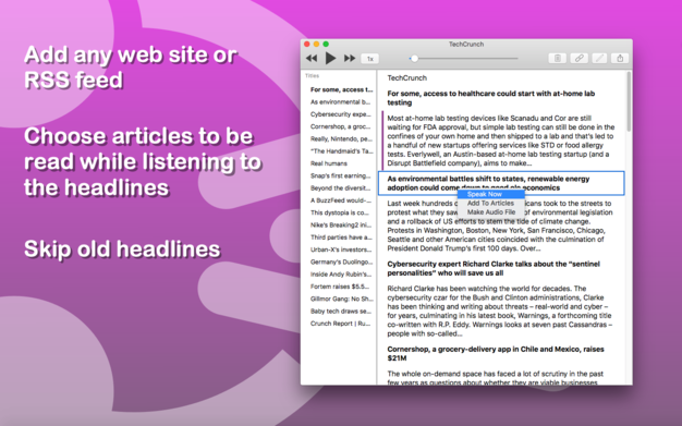 Speech Central Mac版可以從你在應用程序內(nèi)瀏覽的任何頁面創(chuàng)建語音或音頻文件,也可以從任何其他應用程序粘貼互聯(lián)網(wǎng)頁面的鏈接。閱讀的文本及其語言將被自動檢測到。它還可以讀取Microsoft Word (。docx)、PowerPoint (。pptx)、PDF、e - mail (。eml)和許多其他文本文件和電子書格式(。docx)。然后把它們轉化成演講。通過使用該應用程序,您將以一種簡單的方式構建您的知識庫。每個讀取項自動移動到支持強大的搜索和過濾功能的舊文章。這些文本總是可以離線使用。注釋工具用于將項目標記為收藏項,或將其中的重要段落添加書簽。您可以使用app與任何支持的語言進行文本到語音。支持包括觸摸欄在內(nèi)的最新macOS功能。