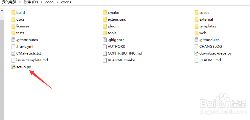 下載之后是zip文件,進行解壓縮,得到自己的需要的文件,cocos依賴于python,請先安裝python,點擊setup.py進行配置