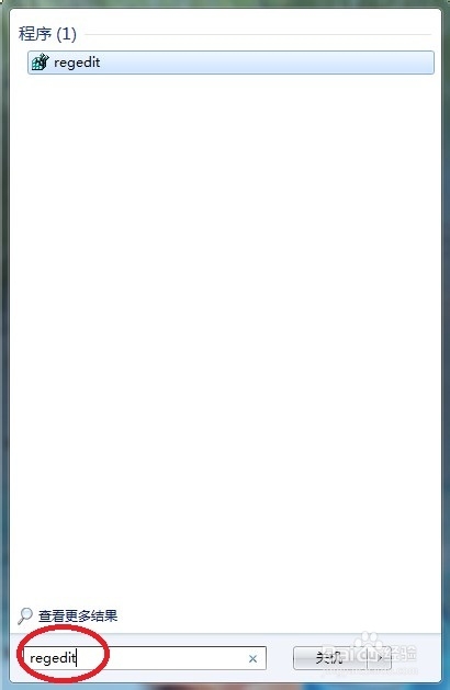 在開始搜索欄,輸入注冊(cè)表命令“regedit”再“回車”