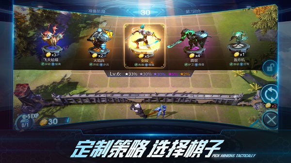 12.花費5金幣為指揮官增加經(jīng)驗,指揮官等級提升可以增加上場的棋子數(shù)。最多可升10級,在戰(zhàn)場上放置10枚棋子。