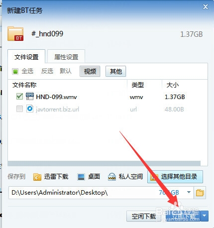 4、最后將自動創(chuàng)建一個“BT下載任務(wù)”,在此只需要點擊“立即下載”按鈕就可以下載種子視頻啦。