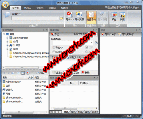 碩思閃客精靈個(gè)人版能捕捉.反編譯.查看和提取shockwave Flash 影片(.swf和.exe支持Fla格式文件),最新版增加“編輯”功能,可以對(duì)SWF影片進(jìn)行修改,替換資源,輕松反編譯一個(gè)或是多個(gè)SWF格式文件為FLA/FLEX項(xiàng)目文件。支持Flash 6, Flash MX 2004, Flash 8, Flash CS3, Flash CS4 and Flash CS5。它能恢復(fù)FLA/FLEX項(xiàng)目文件,并反編譯FLASH的所有元素,包括:矢量圖,聲音,圖片,片段,字體,文本,腳本等。支持動(dòng)作腳本 AS3.0。使用閃客精靈專業(yè)版你可以在任意一個(gè)Flash影片上找到你想找的東西。碩思閃客精靈還提供了一個(gè)輔助工具--閃客名捕,它是一個(gè)SWF捕捉工具。當(dāng)用戶在IE瀏覽器或Firefox瀏覽器中瀏覽網(wǎng)頁(yè)的同時(shí),可以使用它來(lái)捕捉Flah動(dòng)畫(huà)并保存到本機(jī)。
