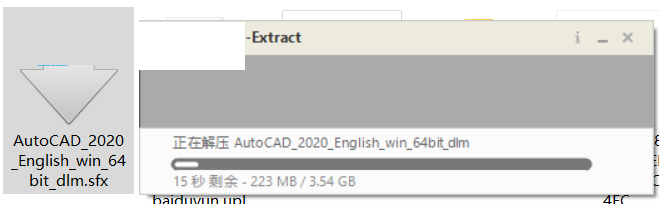 1、本站下載壓縮包,解壓后獲得64位cad2020安裝包和注冊機2、雙擊原版安裝包AutoCAD_2020_English_win_64bit_dlm.sfx.exe運行加載,并解壓
