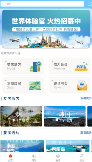 為用戶提供具有海外特色的愛好者活動如潛水、跳傘等