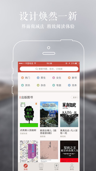 【全方位數(shù)字出版平臺(tái)】邂逅海量暢銷圖書、精彩原創(chuàng)小說(shuō)、辛辣資訊觀點(diǎn),【60萬(wàn)冊(cè)好書】匯聚成【國(guó)內(nèi)最大在線書城】,一鍵搜得心儀好書。【IP孵化平臺(tái)】獨(dú)家原創(chuàng)小說(shuō)改編同名網(wǎng)絡(luò)大電影、網(wǎng)劇即將開播,《西楚霸王》《亂斗西游》等網(wǎng)易旗下超人氣游戲同名小說(shuō)獨(dú)家首發(fā),全力打造原生IP的影視化、游戲化等全版權(quán)生態(tài)戰(zhàn)略