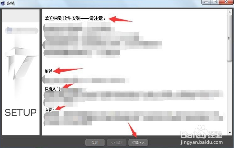 安裝第二步:提示,閱讀提示文字并點(diǎn)擊繼續(xù)。