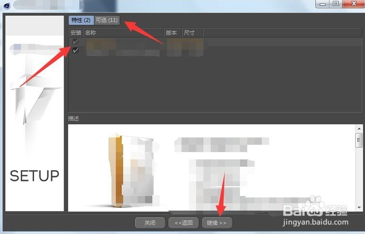 安裝第五步:特性選擇,默認(rèn)勾選兩項(xiàng)特性,可取消第二項(xiàng)不用安裝,點(diǎn)擊繼續(xù)。